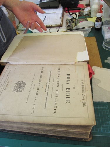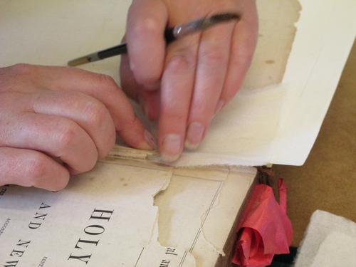 Repairing a damaged page corner in an old family Bible